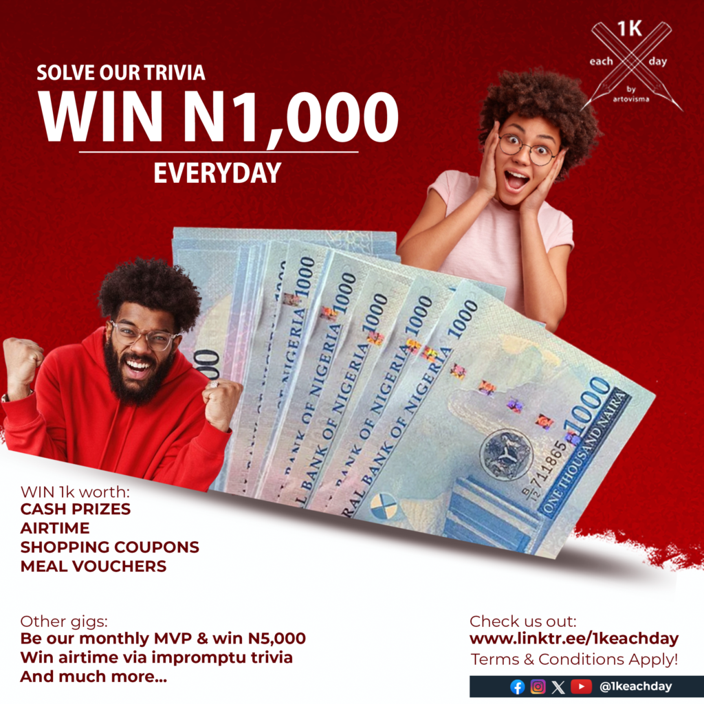 Check out our daily trivia and see if you are as clever as you think but that’s not all, we have our monthly N5,000 MVP prize just for being that – our MVP